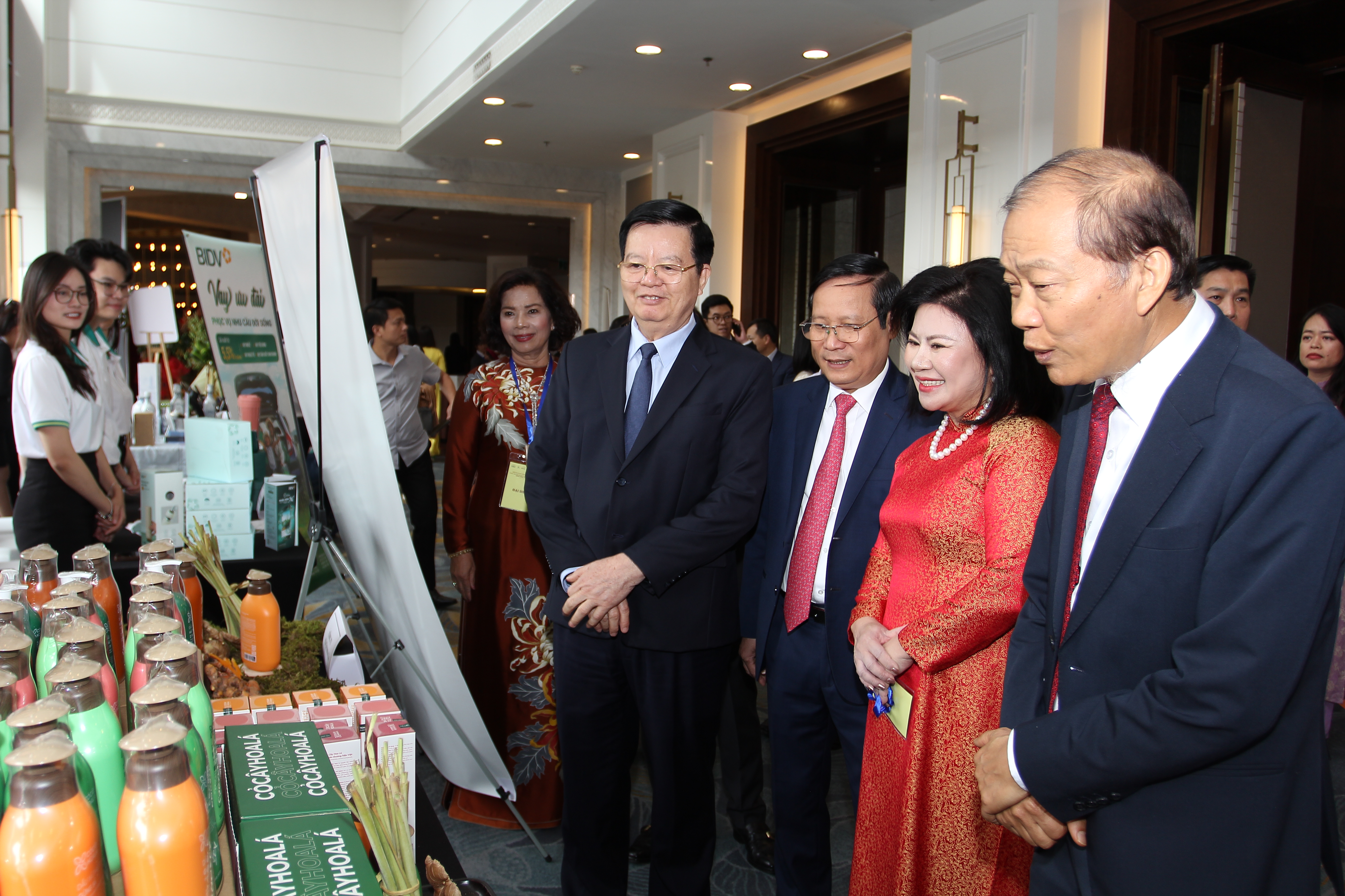 Phó thủ tướng Chính phủ Mai Văn Chính (bên trái ngoài cùng); Ông Phạm Tấn Công - Chủ tịch VCCI (ở giữa); Bà Bùi Thị Hải Yến - Chủ tịch HĐQT Hanel cùng Ông Hoàng Quang Phòng - Phó Chủ tịch VCCI (bên phải ngoài cùng) cùng ghé thăm các gian hàng tại buổi lễ