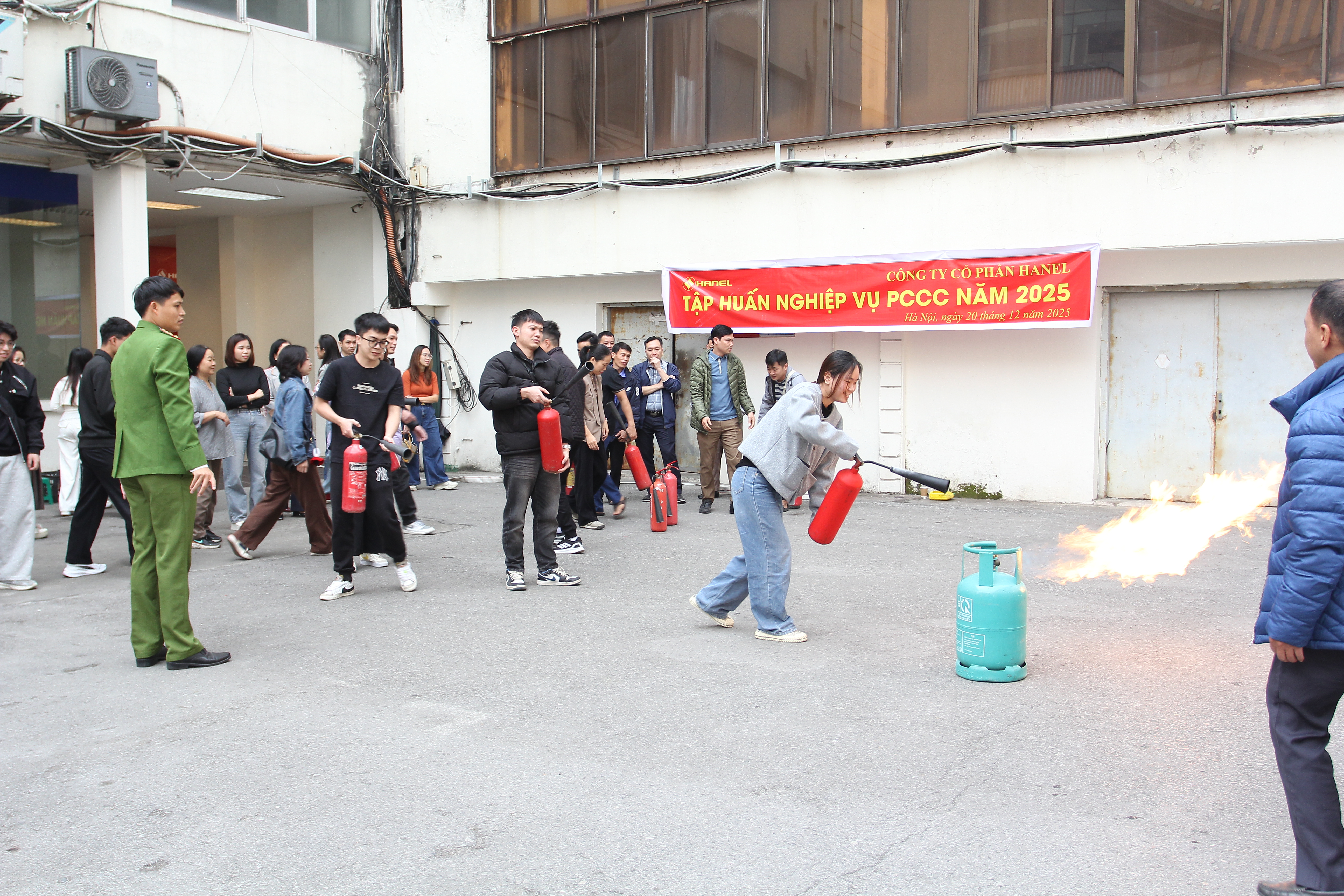Bên cạnh phần lý thuyết, CBNV Công ty còn được thực hành sử dụng bình chữa cháy và xử lý tình huống cháy giả định dưới sự hướng dẫn của giảng viên. Chương trình góp phần nâng cao ý thức trách nhiệm của CBNV trong công tác PCCC, hướng tới xây dựng môi trường làm việc an toàn, chủ động và hiệu quả tại Công ty Cổ phần Hanel.