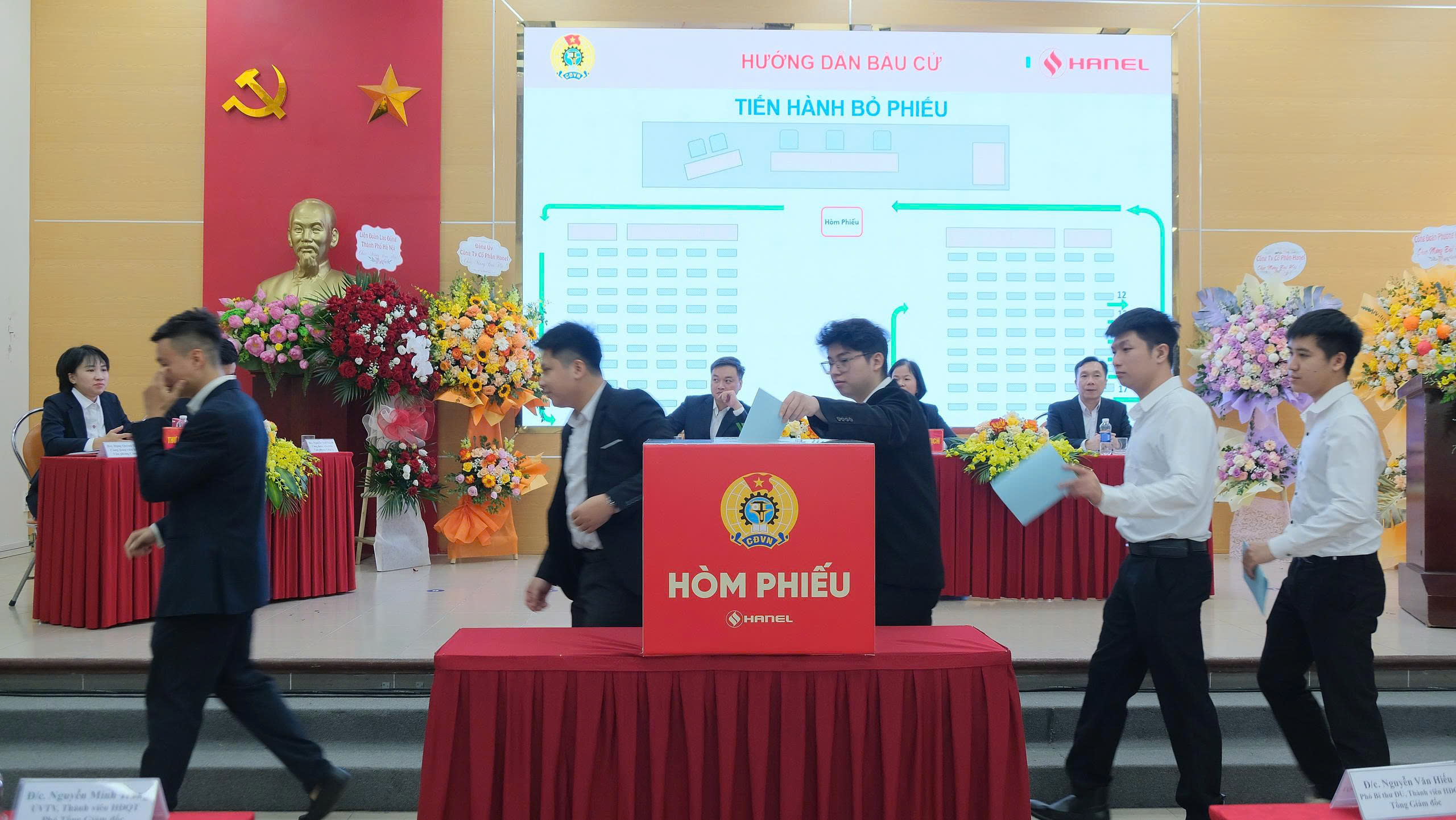 Đại hội đã nhất trí cao, bầu được BCH Công đoàn Công ty CP Hanel khóa VIII, nhiệm kỳ 2025 - 2030 gồm 07 đồng chí: Đ/c Phùng Thị Thùy Dung; Đ/c Hoàng Giang; Đ/c Lê Mạnh Hải; Đ/c Cao Mai Khanh; Đ/c Nguyễn Bích Loan; Đ/c Nguyễn Hoài Nam; Đ/c Nguyễn Thị Hồng Nhi. Đ/c Lê Mạnh Hải được bầu giữ chức Chủ tịch Công đoàn Công ty.