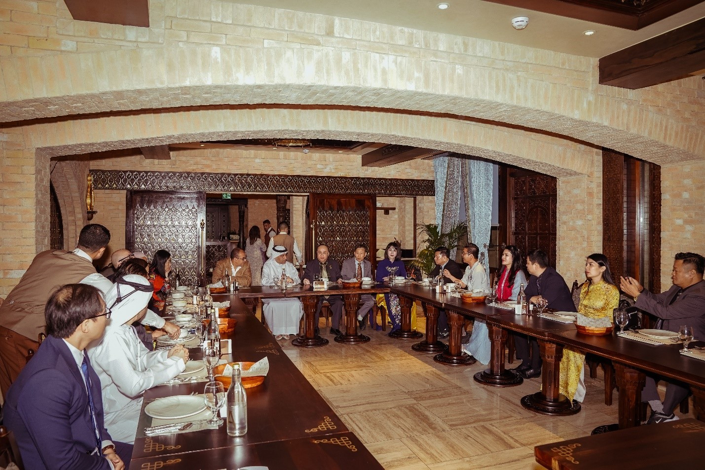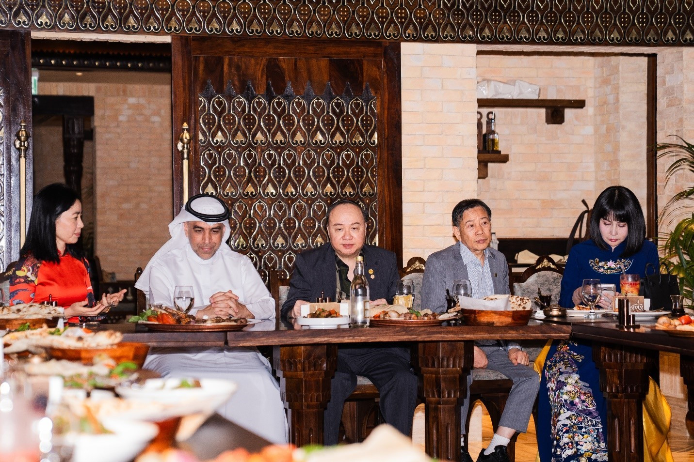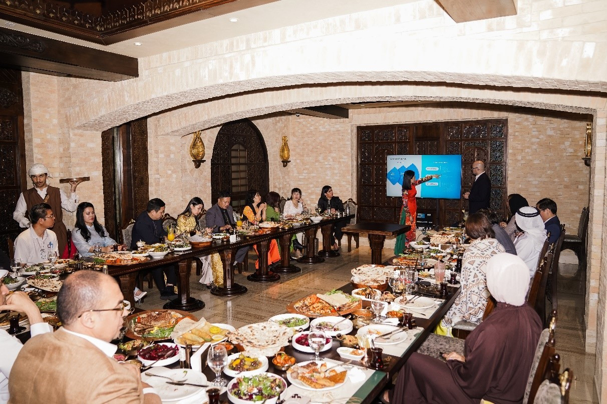 Ngay khi đặt chân đến Dubai, đoàn đã bắt đầu chương trình làm việc dày đặc với buổi gặp gỡ tổ chức AIM Global Foundation. Cuộc trao đổi diễn ra lúc 18h ngày 16/7 (theo giờ địa phương) tại một không gian đậm chất Trung Đông nằm giữa khu vực Jumeirah 3, Dubai.