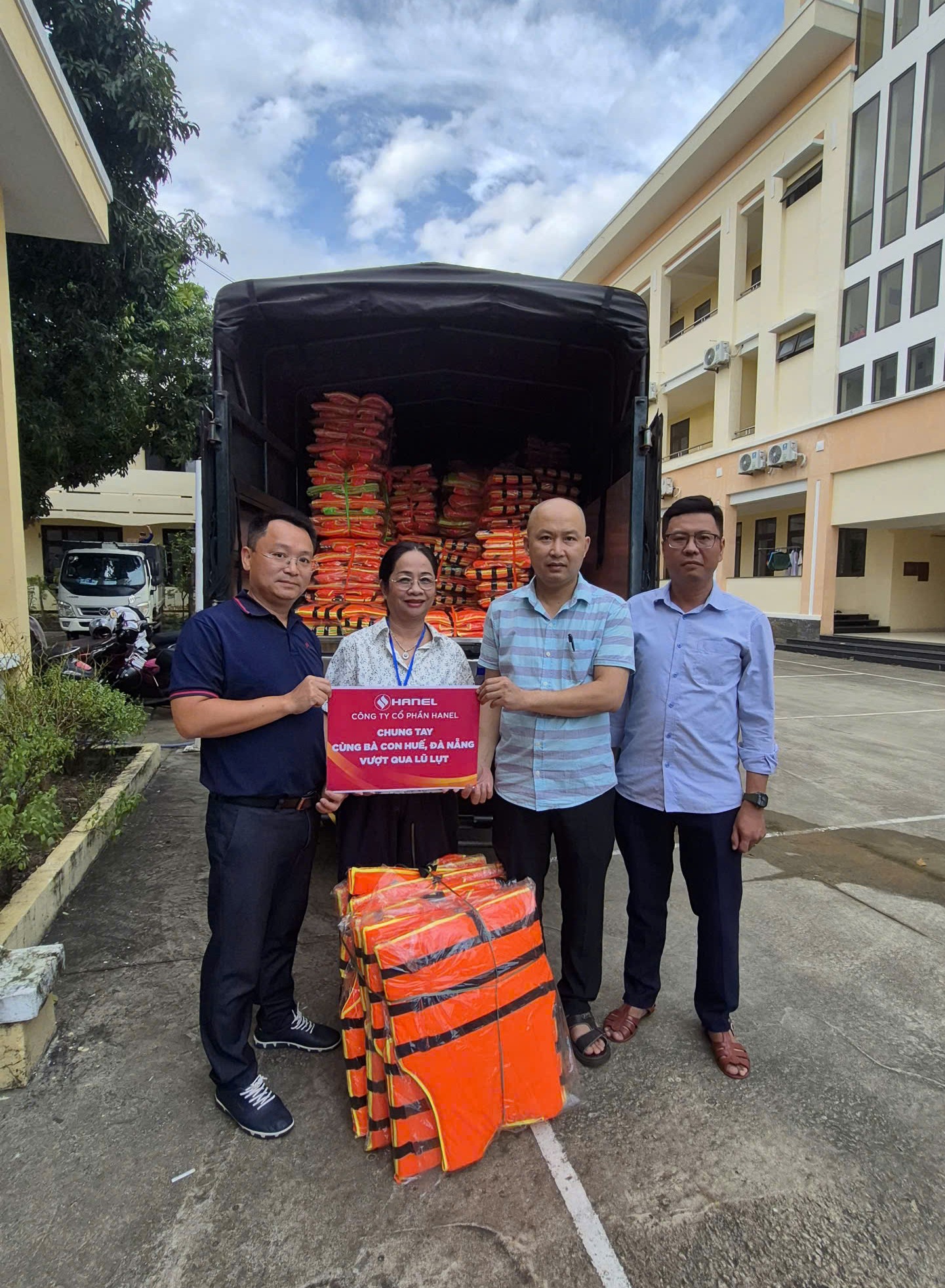 Theo đó, tại Đà Nẵng, 500 bộ áo phao đã được Công ty Hanel trao tới Ủy ban Mặt trận Tổ quốc TP Đà Nẵng.
