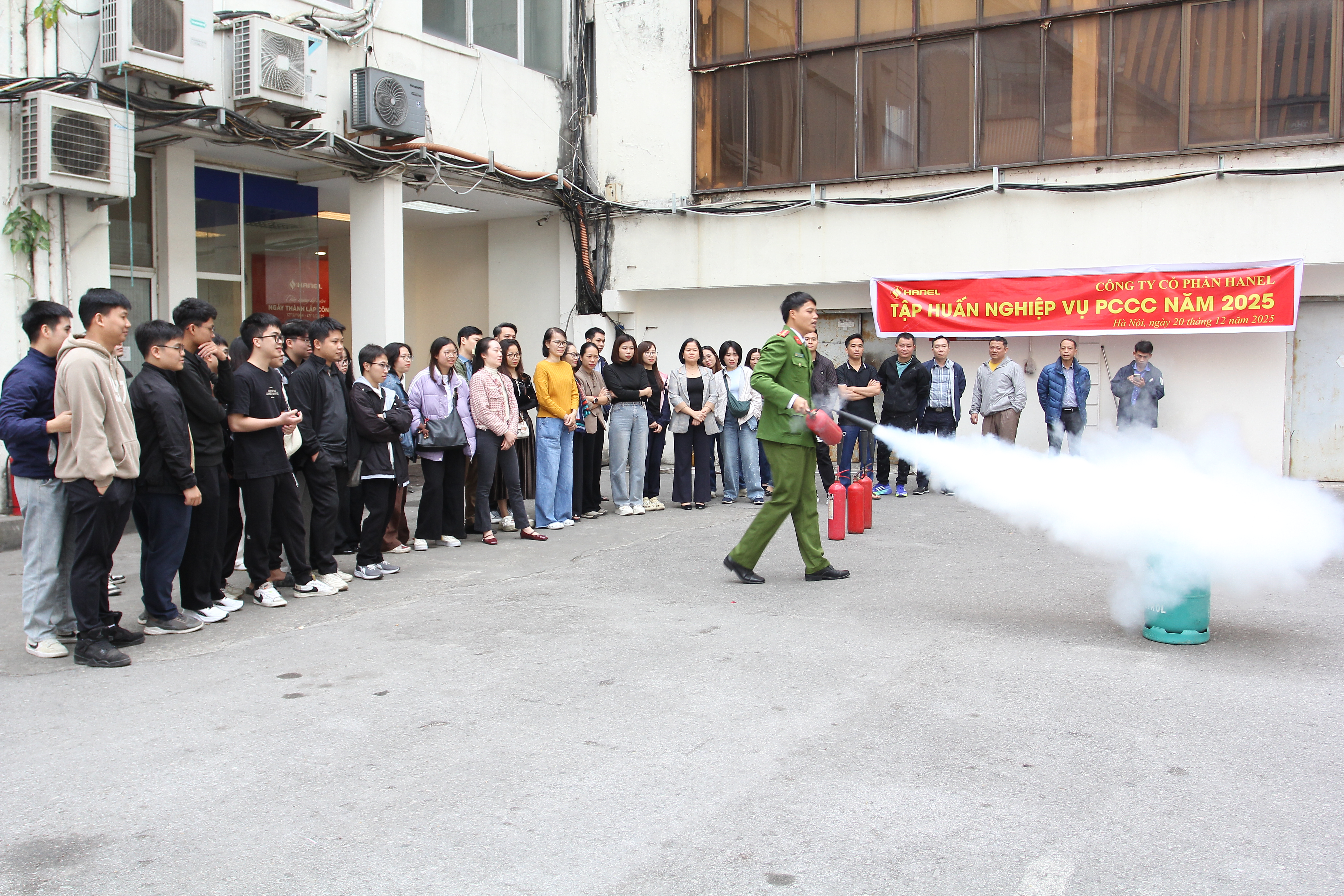 Ngày 20/12/2025, Công ty Cổ phần Hanel đã tổ chức tập huấn nghiệp vụ Phòng cháy, chữa cháy (PCCC) cho cán bộ, nhân viên nhằm nâng cao nhận thức và kỹ năng xử lý các tình huống cháy nổ tại nơi làm việc. Buổi tập huấn do Đại úy Kiều Văn Dũng – Giảng viên Trường Đại học Phòng cháy Chữa cháy trực tiếp giảng dạy. CBNV được trang bị kiến thức cơ bản về công tác PCCC, các nguyên nhân gây cháy nổ thường gặp, biện pháp phòng ngừa và quy trình xử lý sự cố.