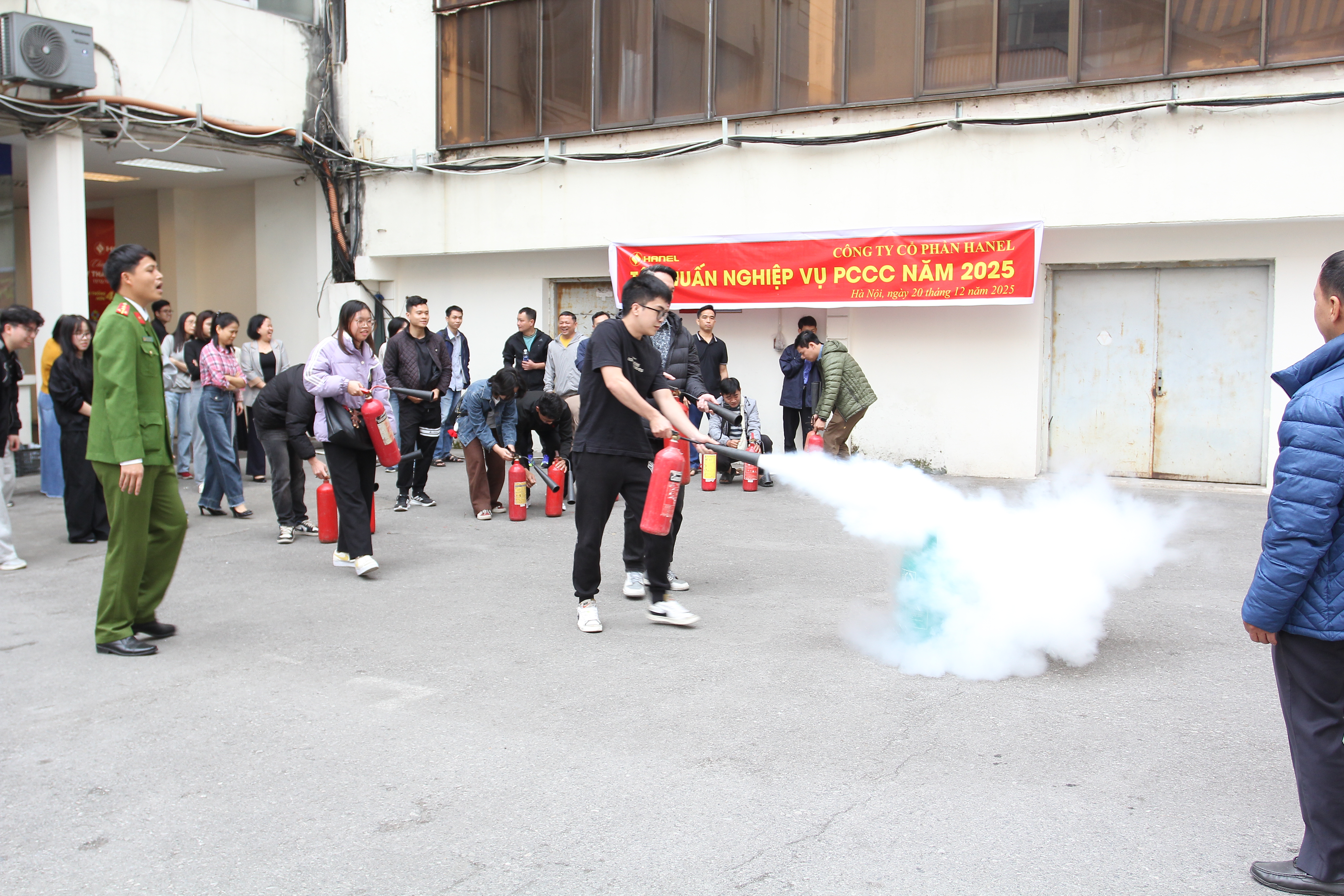 Bên cạnh phần lý thuyết, CBNV Công ty còn được thực hành sử dụng bình chữa cháy và xử lý tình huống cháy giả định dưới sự hướng dẫn của giảng viên. Chương trình góp phần nâng cao ý thức trách nhiệm của CBNV trong công tác PCCC, hướng tới xây dựng môi trường làm việc an toàn, chủ động và hiệu quả tại Công ty Cổ phần Hanel.