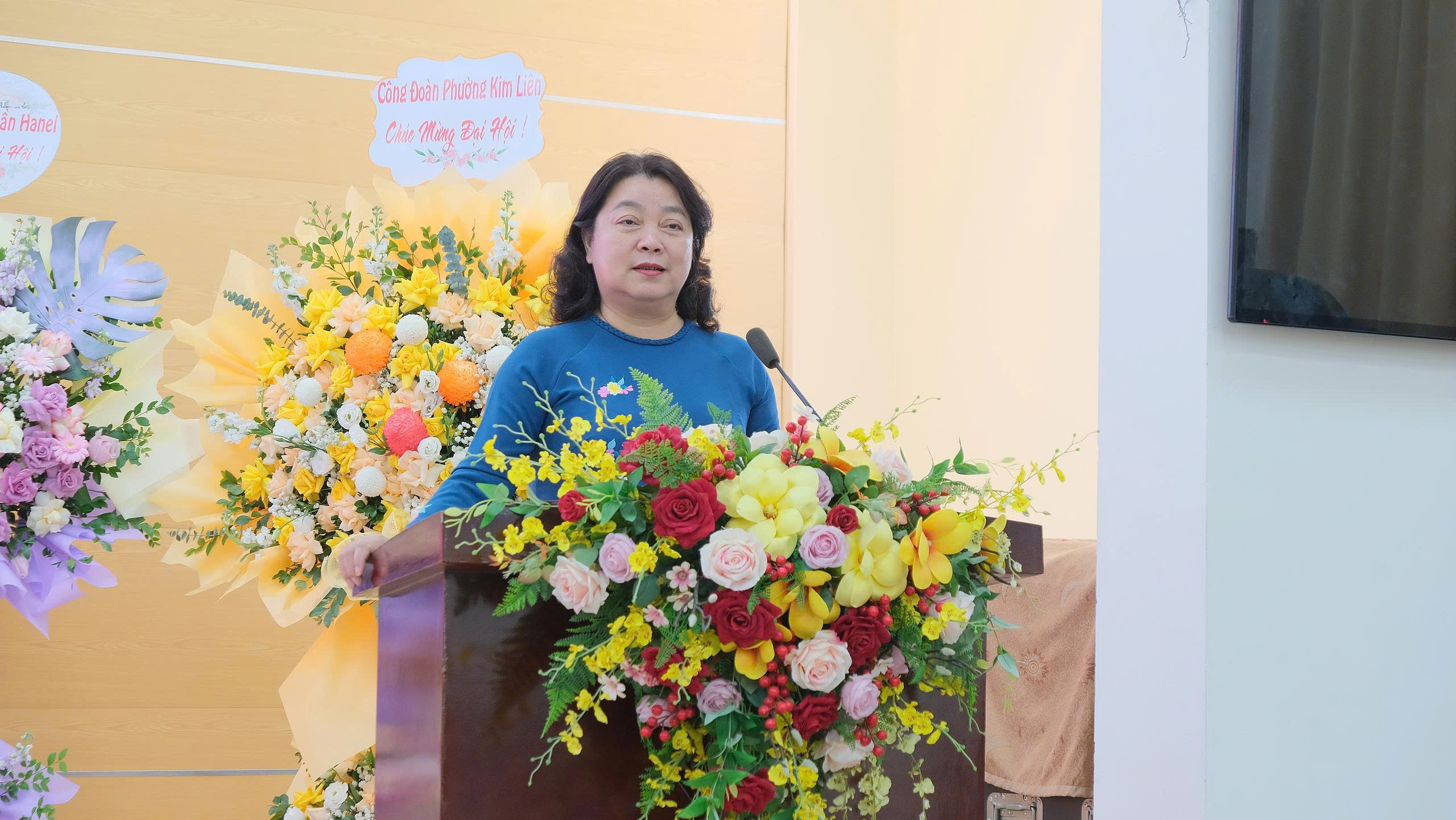 Các đồng chí Lãnh đạo Công đoàn phường Kim Liên tặng hoa chúc mừng Đại hội.