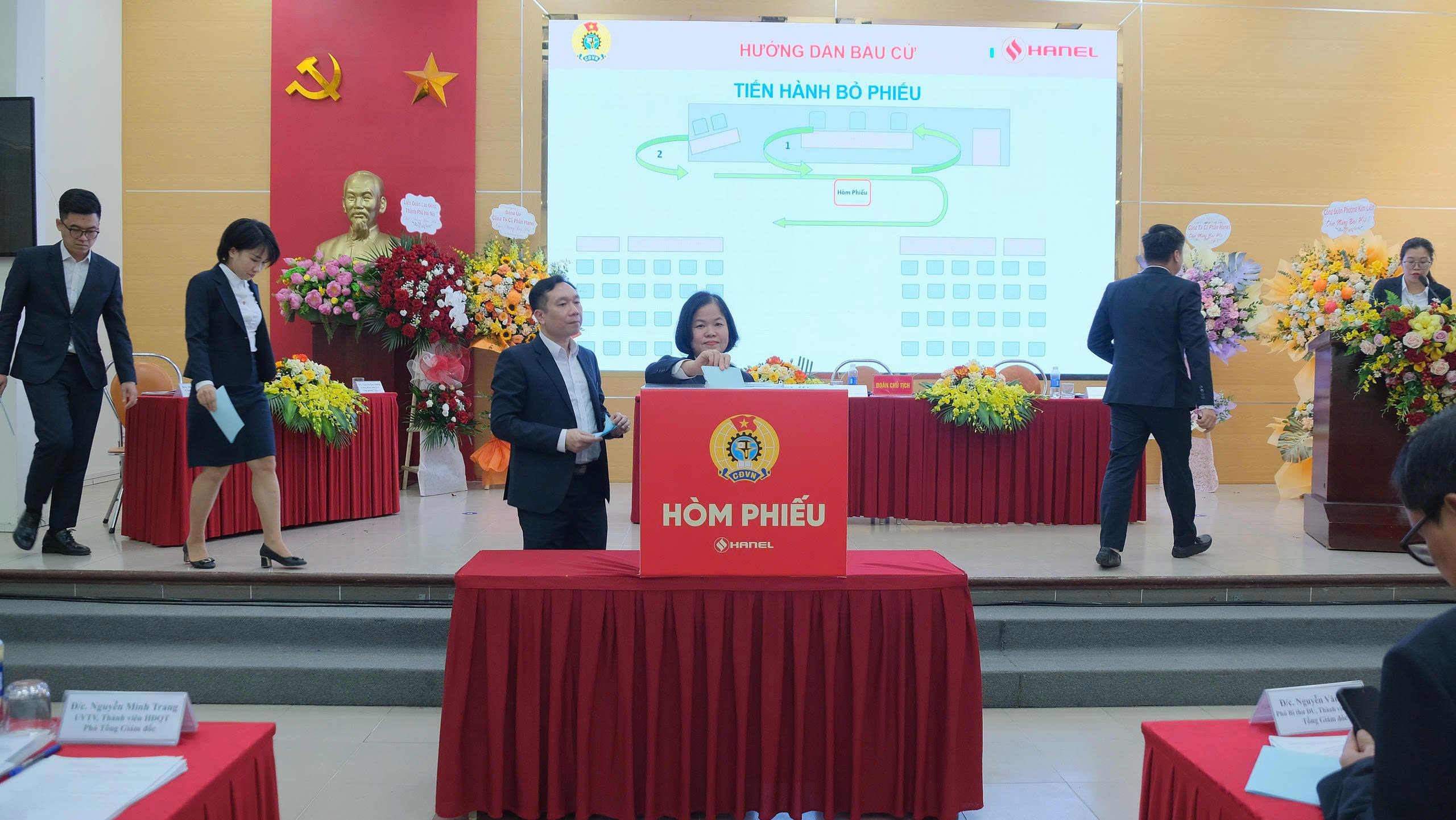 Đại hội đã nhất trí cao, bầu được BCH Công đoàn Công ty CP Hanel khóa VIII, nhiệm kỳ 2025 - 2030 gồm 07 đồng chí: Đ/c Phùng Thị Thùy Dung; Đ/c Hoàng Giang; Đ/c Lê Mạnh Hải; Đ/c Cao Mai Khanh; Đ/c Nguyễn Bích Loan; Đ/c Nguyễn Hoài Nam; Đ/c Nguyễn Thị Hồng Nhi. Đ/c Lê Mạnh Hải được bầu giữ chức Chủ tịch Công đoàn Công ty.