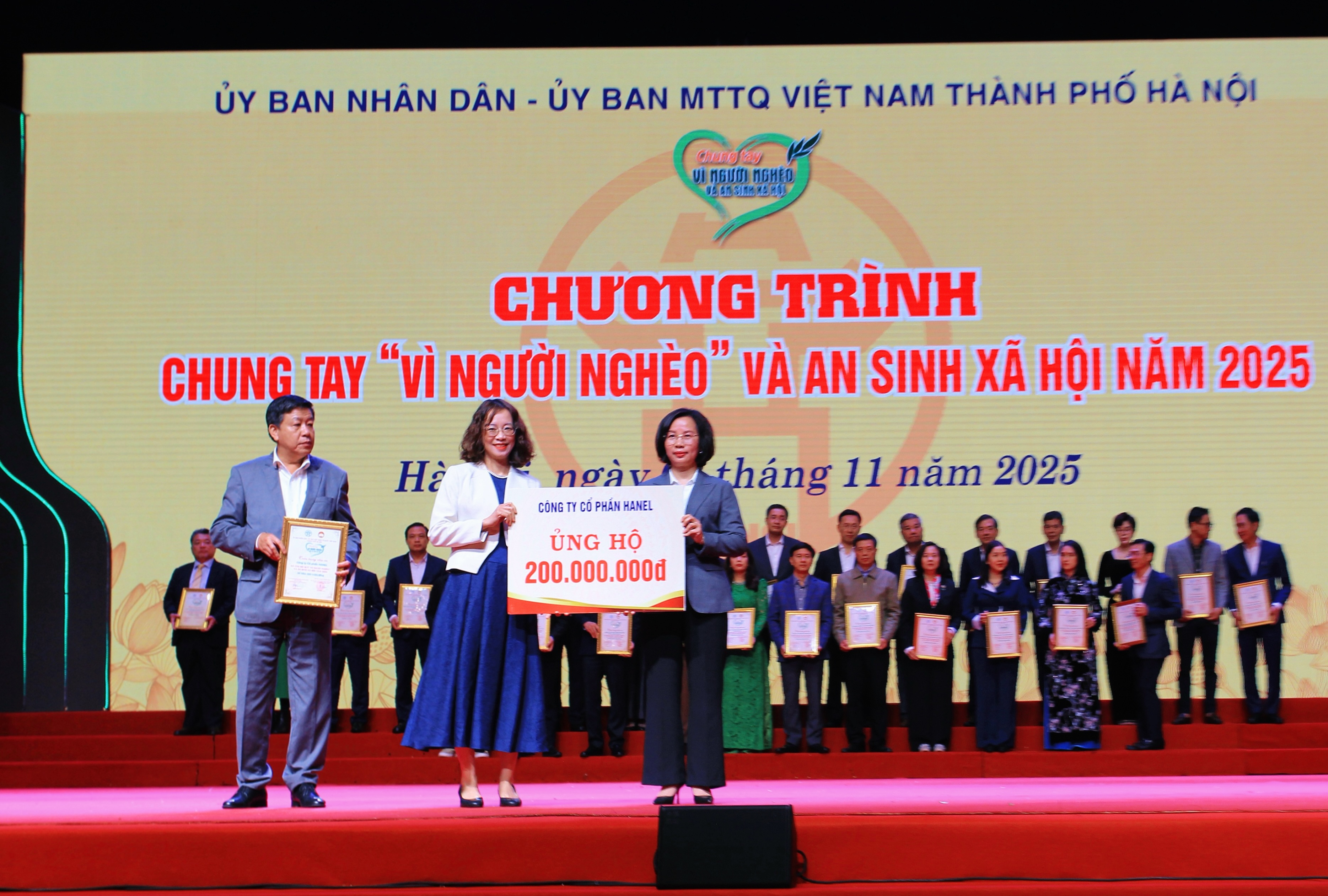 Tại chương trình, Bà Cao Mai Khanh – Phó Tổng giám đốc, đại diện Công ty Cổ phần Hanel đã trao số tiền 200 triệu đồng ủng hộ vào Quỹ “Vì người nghèo”, thể hiện cam kết đồng hành cùng chính quyền và cộng đồng trong công tác an sinh xã hội, giảm nghèo bền vững.