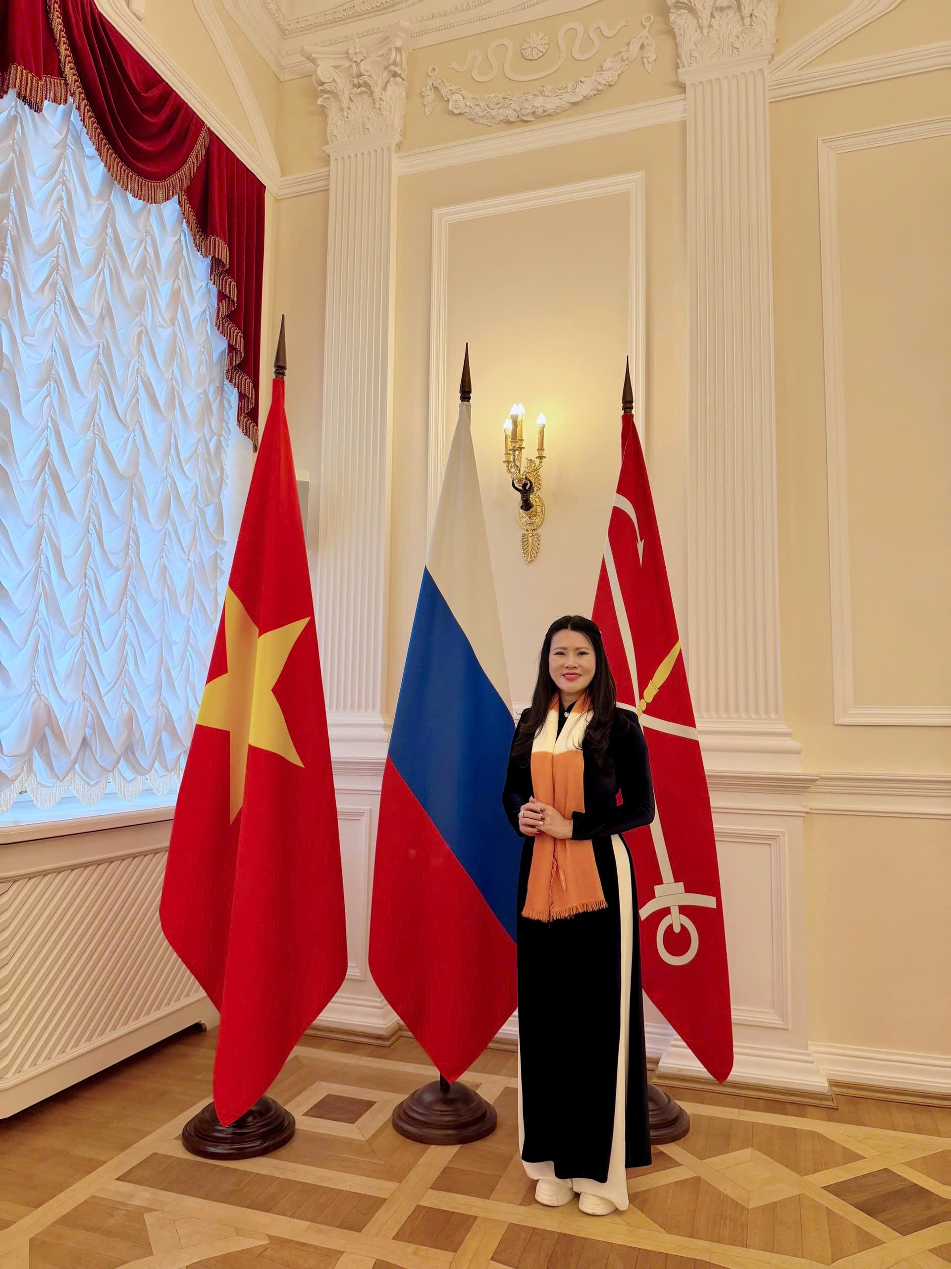 Bà Bùi Thị Lệ Kiều chụp ảnh lưu niệm cùng Ngài Nikolai Bondarenko, Phó chủ tịch Hội đồng Lập pháp St. Petersburg