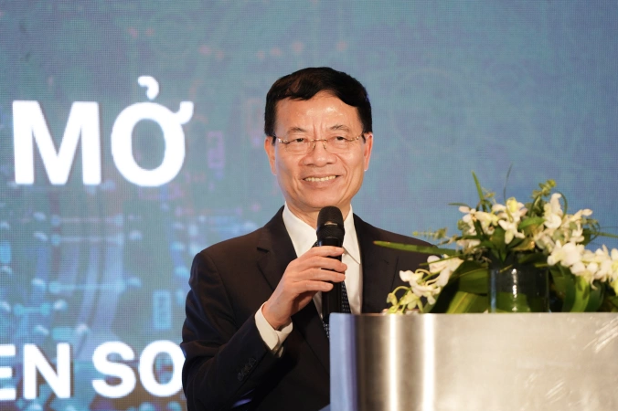 Bộ trưởng Nguyễn Mạnh Hùng nói về việc phát triển AI tại Việt Nam trong Diễn đàn Công nghệ mở 2025. Ảnh: Lưu Quý